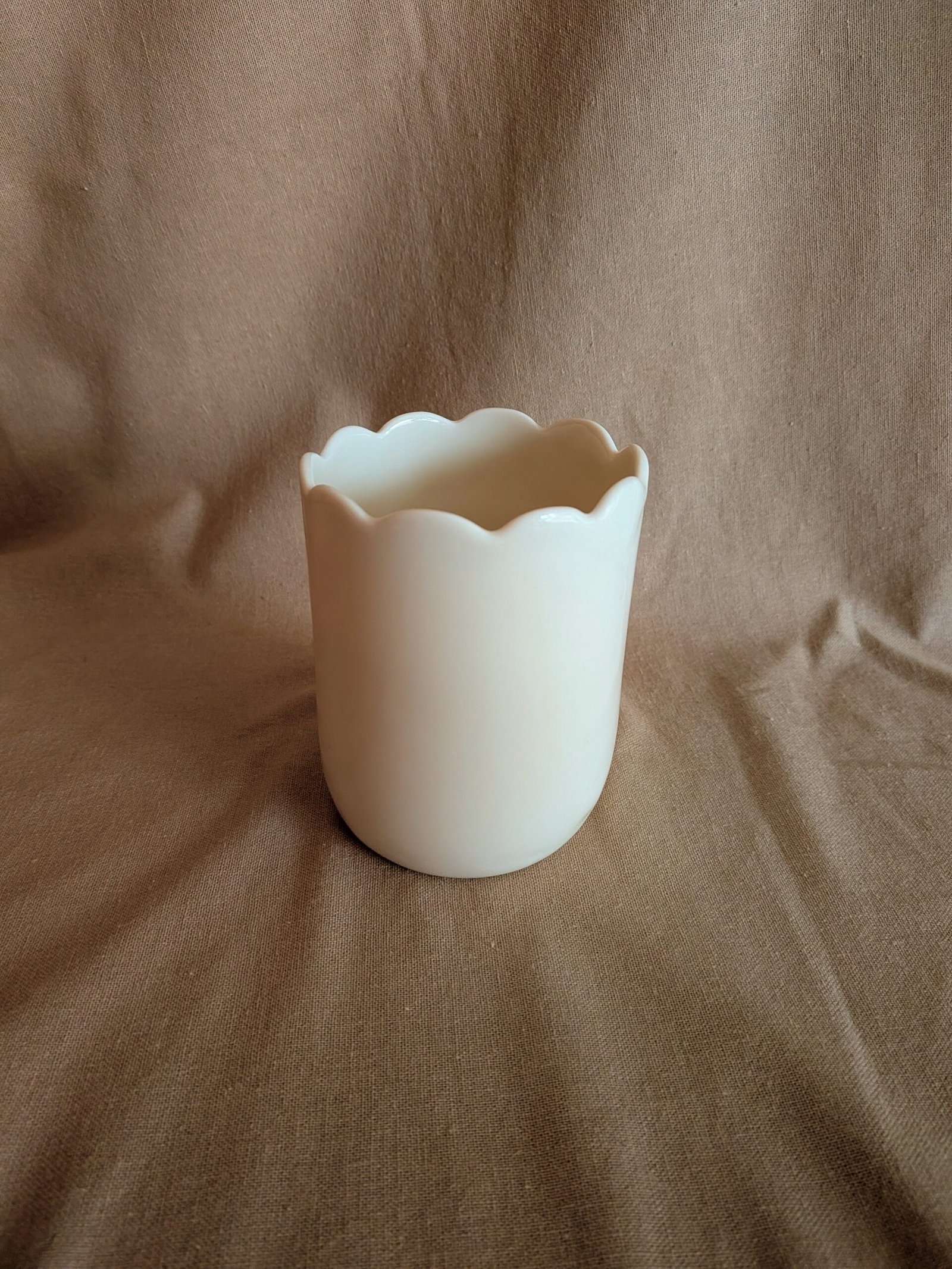 Le façonnage, le séchage et les différentes cuissons peuvent toutefois entraîner de légères déformations de la forme. Ces variations sont inhérentes au travail artisanal de la porcelaine et font partie intégrante du caractère de chaque objet, rendant chaque création unique.