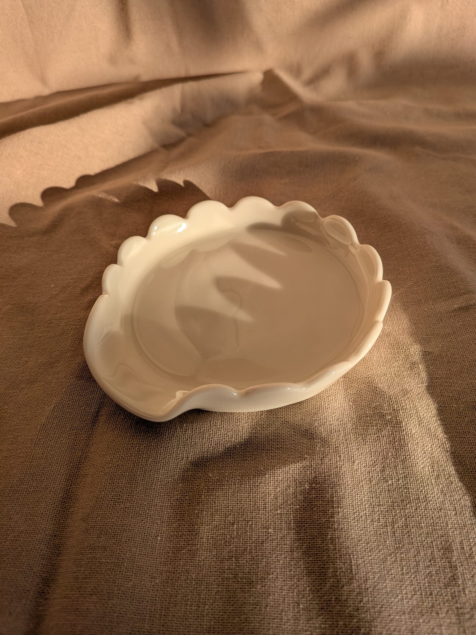 Le repose-cuillère Flore est une pièce en porcelaine façonnée à la main, issue de la collection Flore.