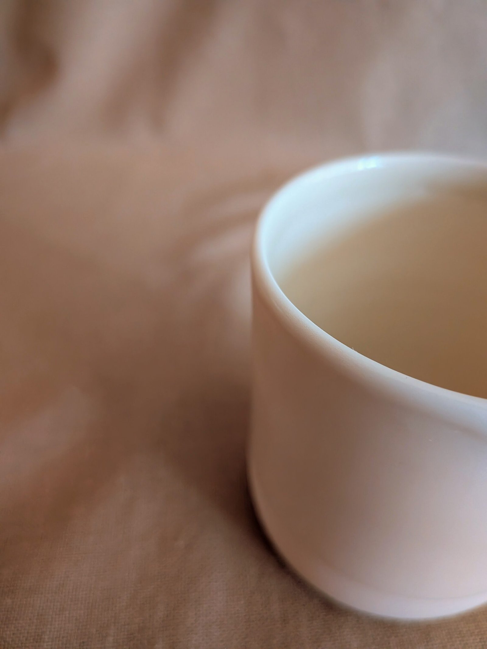 Cette tasse se distingue par son jeu de contrastes : l’intérieur et l’extérieur sont émaillés, offrant une surface lisse et lumineuse, tandis que le pied est laissé brut. Ce contraste entre le mat et le brillant permet de jouer avec la lumière, d’attirer le regard et de donner de l’intérêt à une forme épurée et intemporelle.
