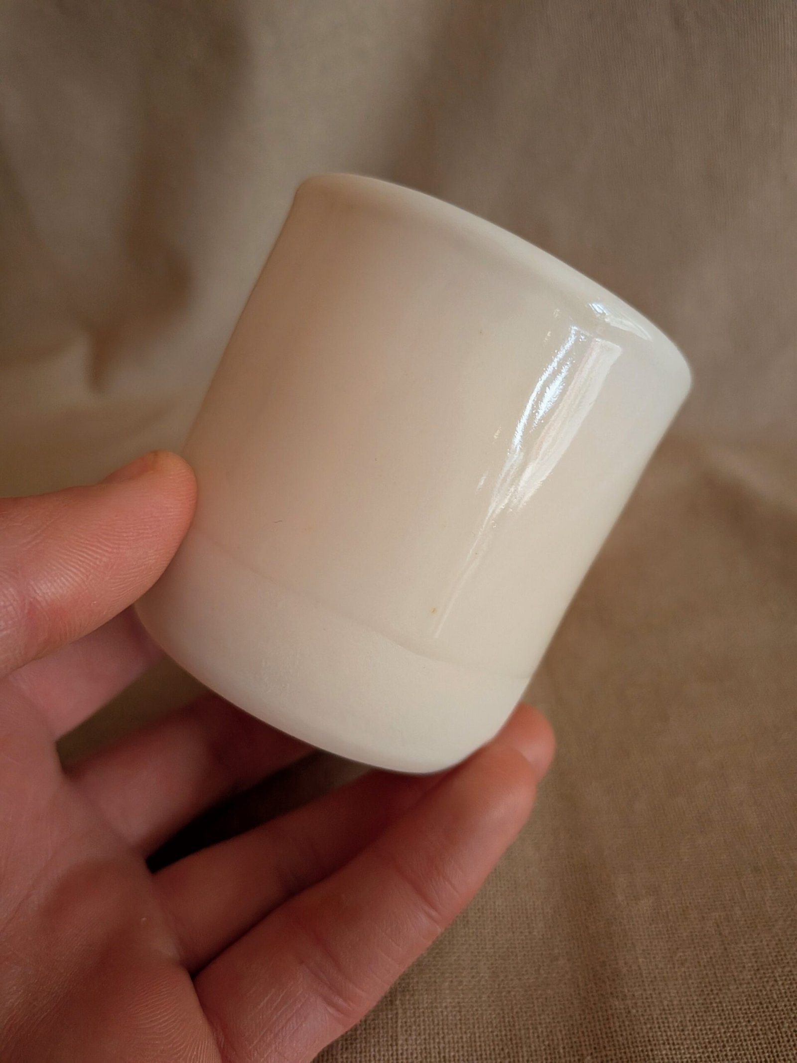 Le façonnage, le séchage et les différentes cuissons peuvent toutefois entraîner de légères déformations de la forme. Ces variations sont inhérentes au travail artisanal de la porcelaine et font partie intégrante du caractère de chaque objet, rendant chaque création unique.